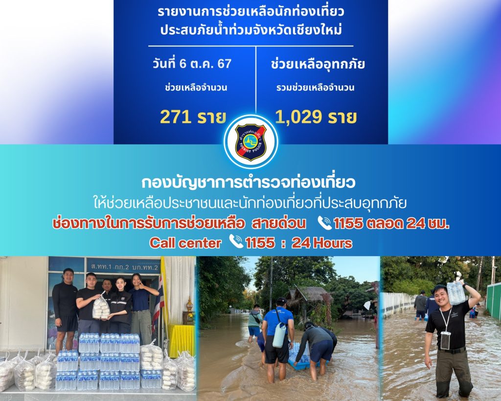 กองบัญชาการตำรวจท่องเที่ยว พร้อมช่วยเหลือประชาชนและนักท่องเที่ยวที่ประสบอุทกภัยตลอด 24 ชั่วโมง สายด่วน 1155 7 ตุลาคม 2567 โดย admin / ข่าวประชาสัมพันธ์ .