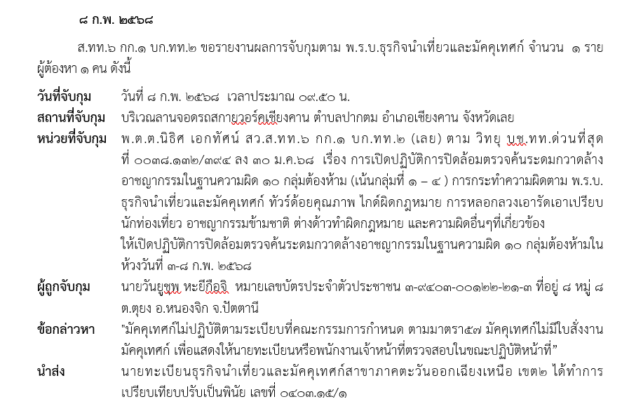 การเปิดปฏิบัติการปิดล้อมตรวจค้นระดมกวาดล้างอาชญากรรมในฐานความผิด 10 กลุ่มต้องห้าม (เน้นกลุ่มที่ 1 – 4 ) การกระทำความผิดตาม พ.ร.บ.ธุรกิจนำเที่ยวและมัคคุเทศก์ ทัวร์ด้อยคุณภาพ ไกด์ผิดกฎหมาย การหลอกลวงเอารัดเอาเปรียบนักท่องเที่ยว อาชญากรรมข้ามชาติ ต่างด้าวทำผิดกฎหมาย และความผิดอื่น ๆ ที่เกี่ยวข้อง