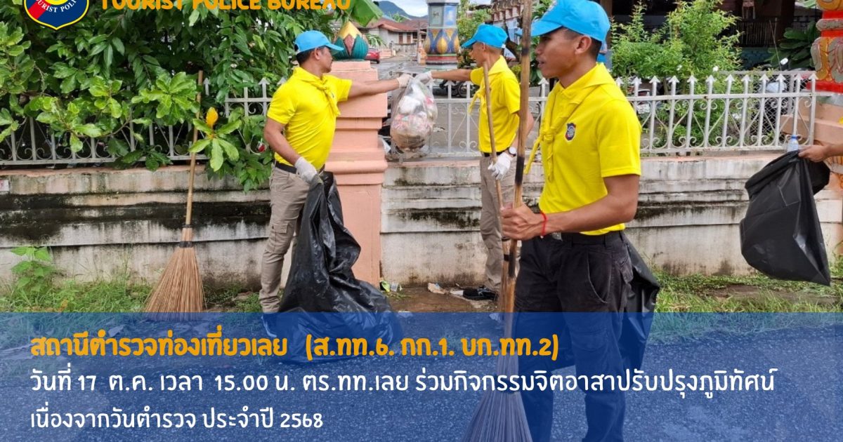 ตร.ทท.เลย ทำกิจกรรมอาสาปรับปรุงภูมิทัศน์ เนื่องจากวันตำรวจ ประจำปี 2568 ณ วัดโพธิ์ชัย อ.นาอาน จ.เลย