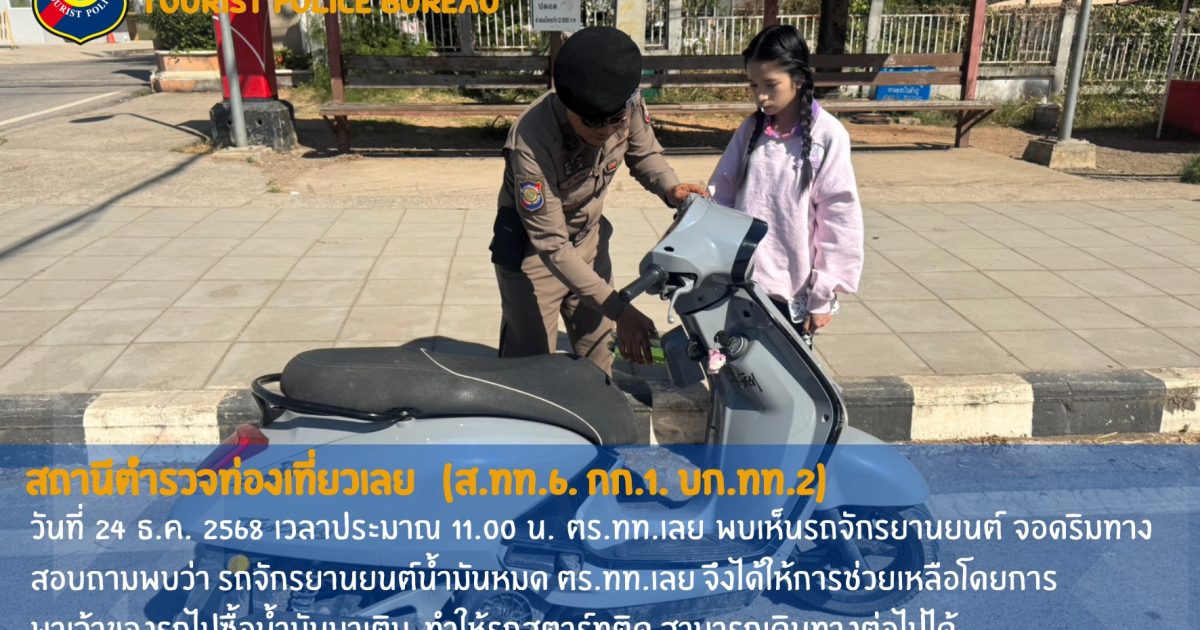 ตร.ทท.เลย (ประจำจังหวัดหนองบัวลำภู) ออกปฏิบัติหน้าที่ในเขตพื้นที่รับผิดชอบ พบรถจักรยานยนต์จอดริมทาง จึงเข้าไปสอบถามพบว่า รถจักยานยนต์น้ำมันหมด จึงให้การช่วยเหลือโดยการพาเจ้าของรถไปซื้อน้ำมันเพื่อมาเติม ทำให้รถจักรยานยนต์สตาร์ทติดเเละสามารถเดินทางต่อไปได้