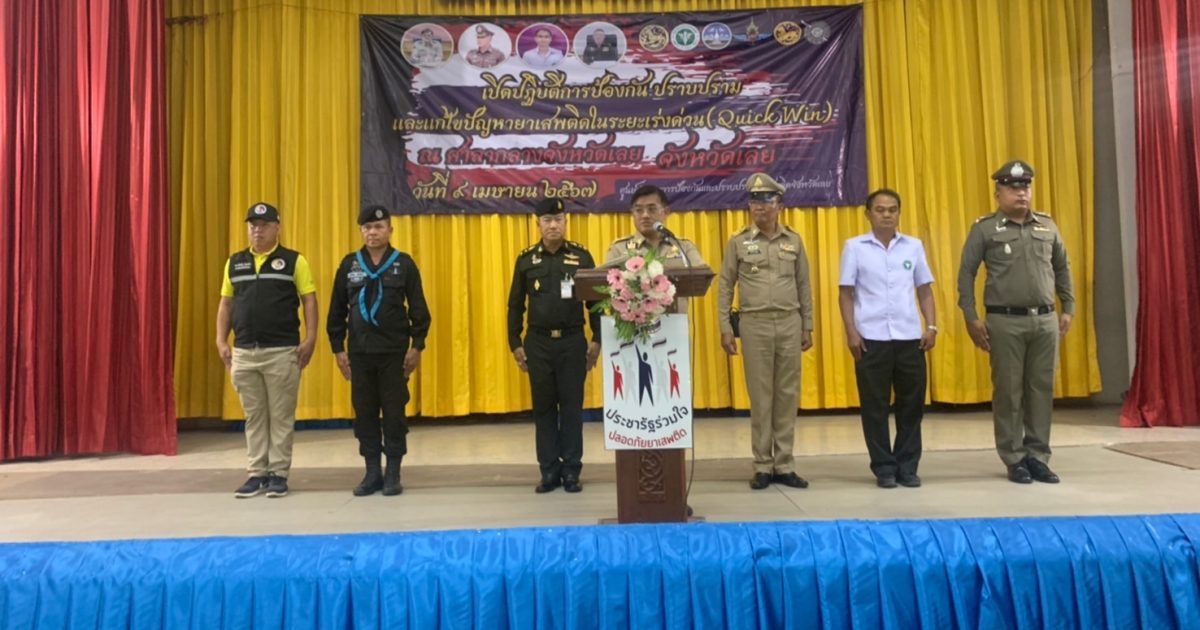 ร่วมกับหน่วยงานความมั่นคงและเจ็ดภาคีเครือข่ายในพื้นที่ ปล่อยแถวเปิดปฏิบัติการป้องกันปราบปรามและแก้ไขปัญหายาเสพติดในระยะเร่งด่วน (Quick Win)