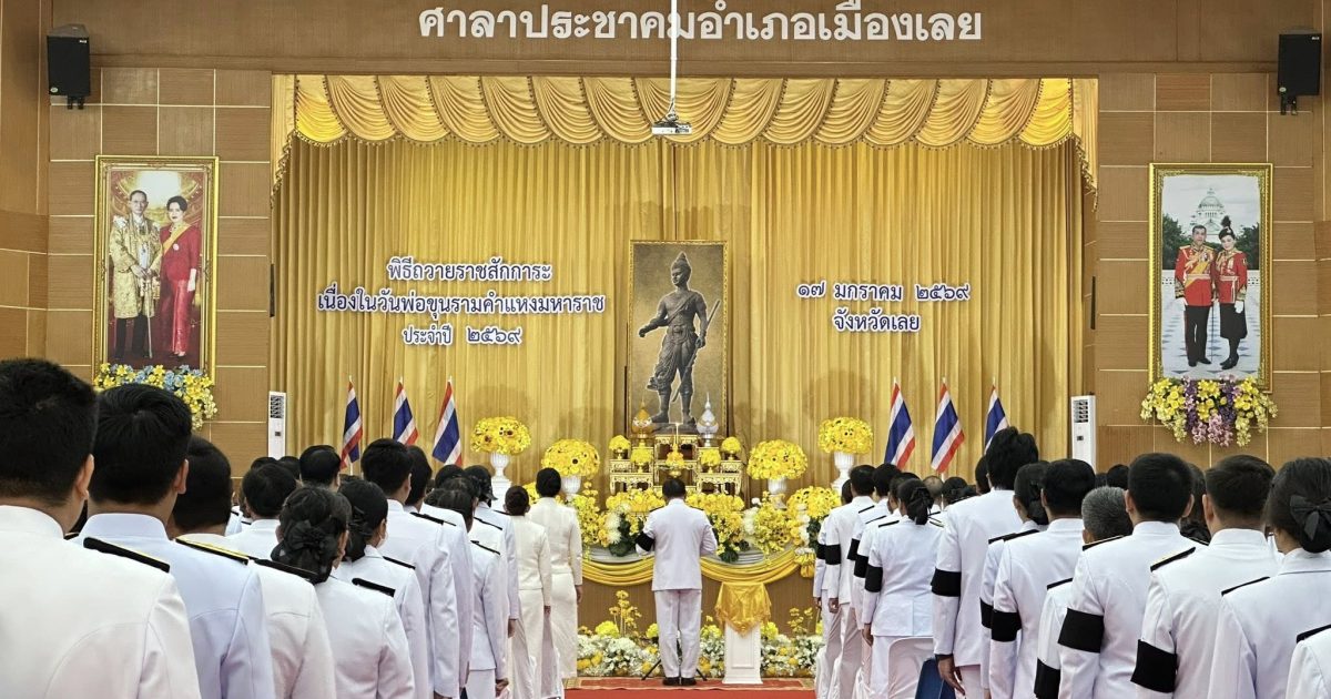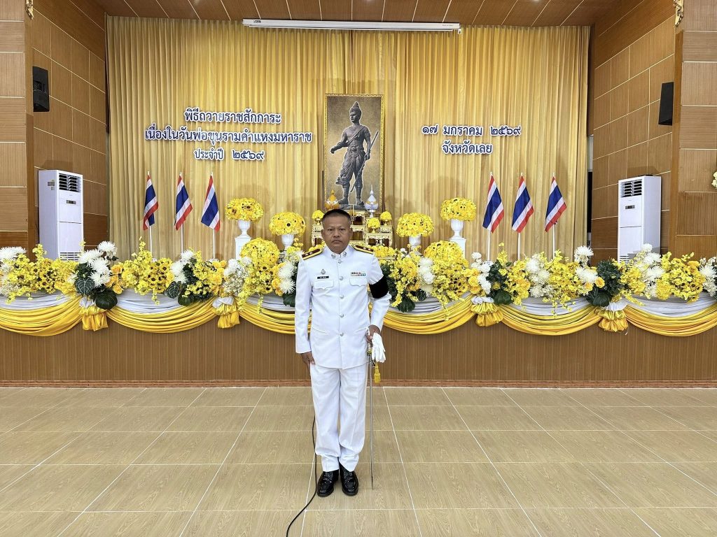 “ร่วมพิธีถวายราชสักการะเนื่องในวันพ่อขุนรามคำแหงมหาราช ประจำปี 2569“ โดยมี นายชัยพจน์ จรูญพงศ์ ผู้ว่าราชการจังหวัดเลย เป็นประธานในพิธีฯ ณ ศาลาประชาคม อ.เมืองเลย จ.เลย