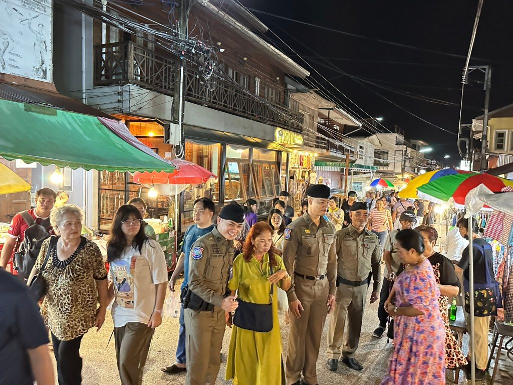 เมื่อวันที่ 7 ต.ค. 2566 เวลา 19.00 น. พ.ต.ต.ศุภรัตน์ มีปรีชา สว.ส.ทท.6 กก.1 บก.ทท. พร้อมด้วยข้าราชการตำรวจชุดสายตรวจในสังกัดดูแลความปลอดภัยให้นักท่องเที่ยวทั้งชาวไทยและชาวต่างชาติพบปะพูดคุยกับผู้กับการ กับนักท่องเที่ยวในพื้นที่ถนนคนเดิน อ. เชียงคาน และ เข้าร่วมพิธีเปิดตัว #ตลาดบกสืบสานวัฒนธรรมไทย ประจำปีงบประมาณ พ.ศ.2566 โดยการจัดงานในครั้งนี้เพื่อส่งเสริมให้เกิดการกระตุ้นเศรษฐกิจ สร้างอาชีพ สร้างรายได้ให้กับประชาชนจากการท่องเที่ยวเชิงสร้างสรรค์และวัฒนธรรม โดยมี นายโกวิท ผกามาศ อธิบดีกรมส่งเสริมวัฒนธรรม เป็นประธานในพิธีเปิด ณ ลานวัฒนธรรมวัดท่าคก ตำบลเชียงคาน อำเภอเชียงคาน จังหวัดเลย