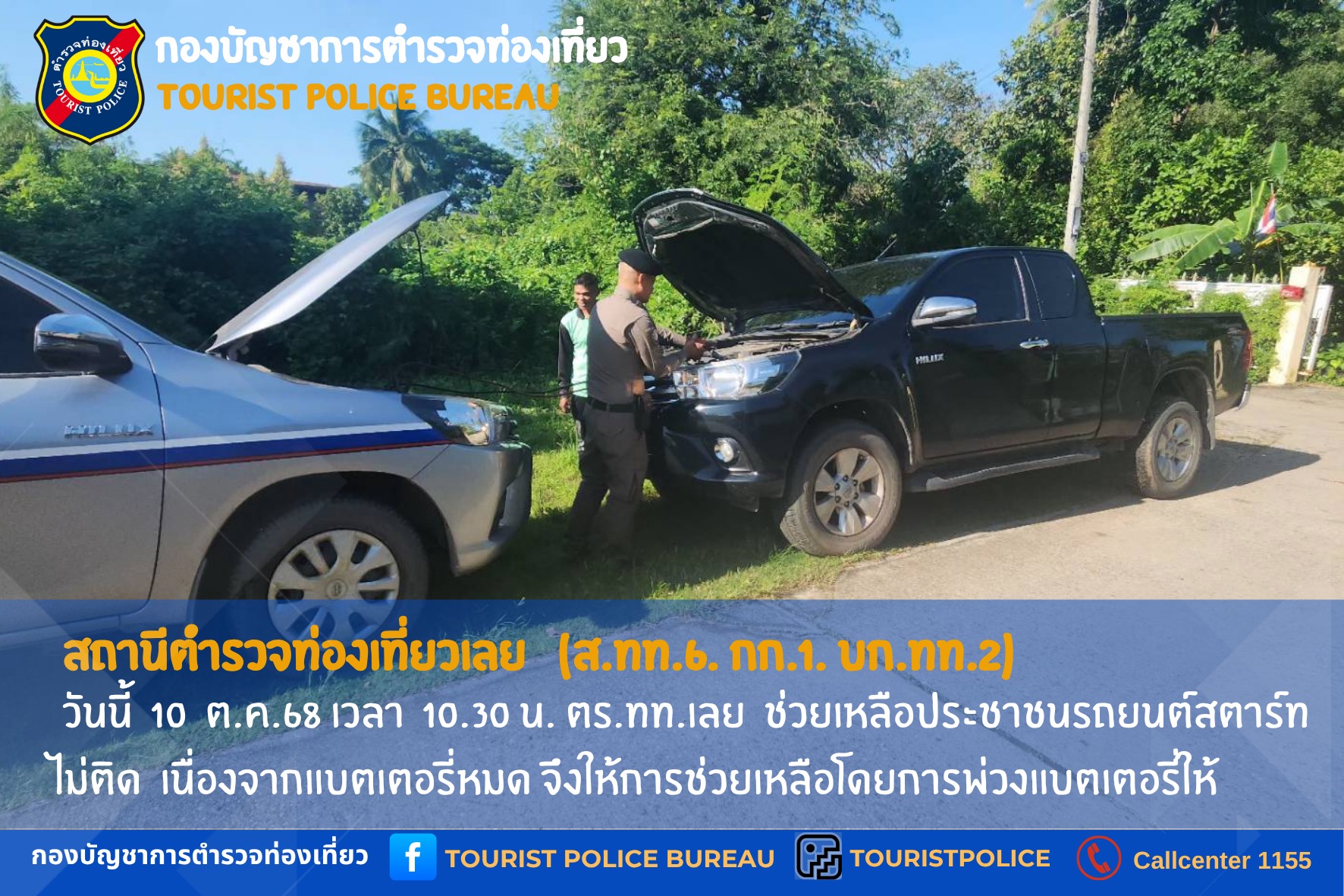ตร.ทท.เลย ออกตรวจปฎิบัติหน้าที่ ในเขตพื้นที่รับผิดชอบ พบประชาชนขอความช่วยเหลือรถสตาร์ทไม่ติด เนื่องจากแบตเตอรี่หมด บริเวณริมถนนบ้านเหนือ ต.ลำภู อ.เมืองจ. หนองบัวลำภู ตร.ทท.เลย จึงได้ให้การช่วยเหลือโดยพ่วงแบตเตอรี่ให้
