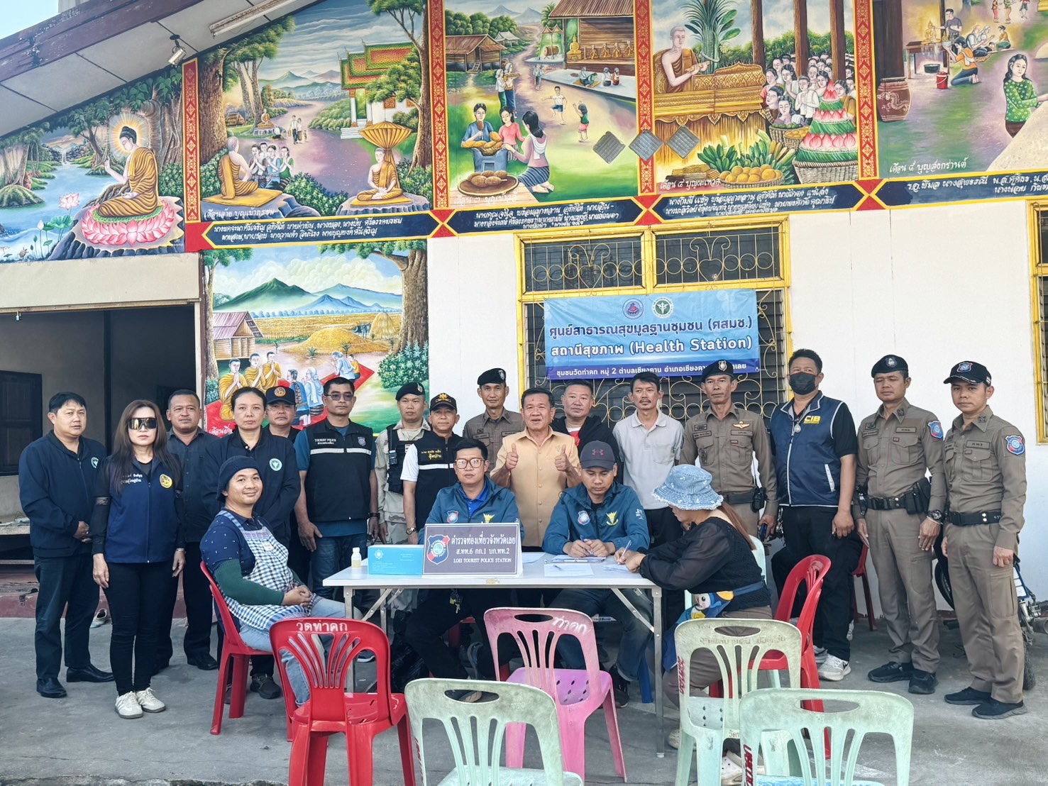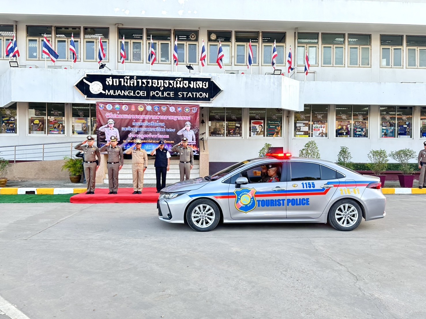 ร่วมปล่อยแถวเพื่อสร้างความเชื่อมั่น ด้านความปลอดภัยแก่นักท่องเที่ยวและอำนวยความสะดวกแก่นักท่องเที่ยว บริเวณ ลานวัฒนธรรม ถนนคนเดินเชียงคาน อ.เชียงคาน จ.เลย