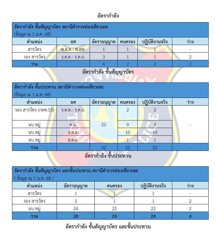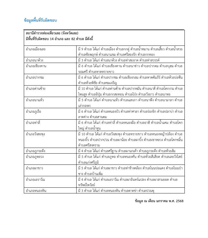 ข้อมูลอัตรากำลังพลสถานีตำรวจท่องเที่ยวเลย