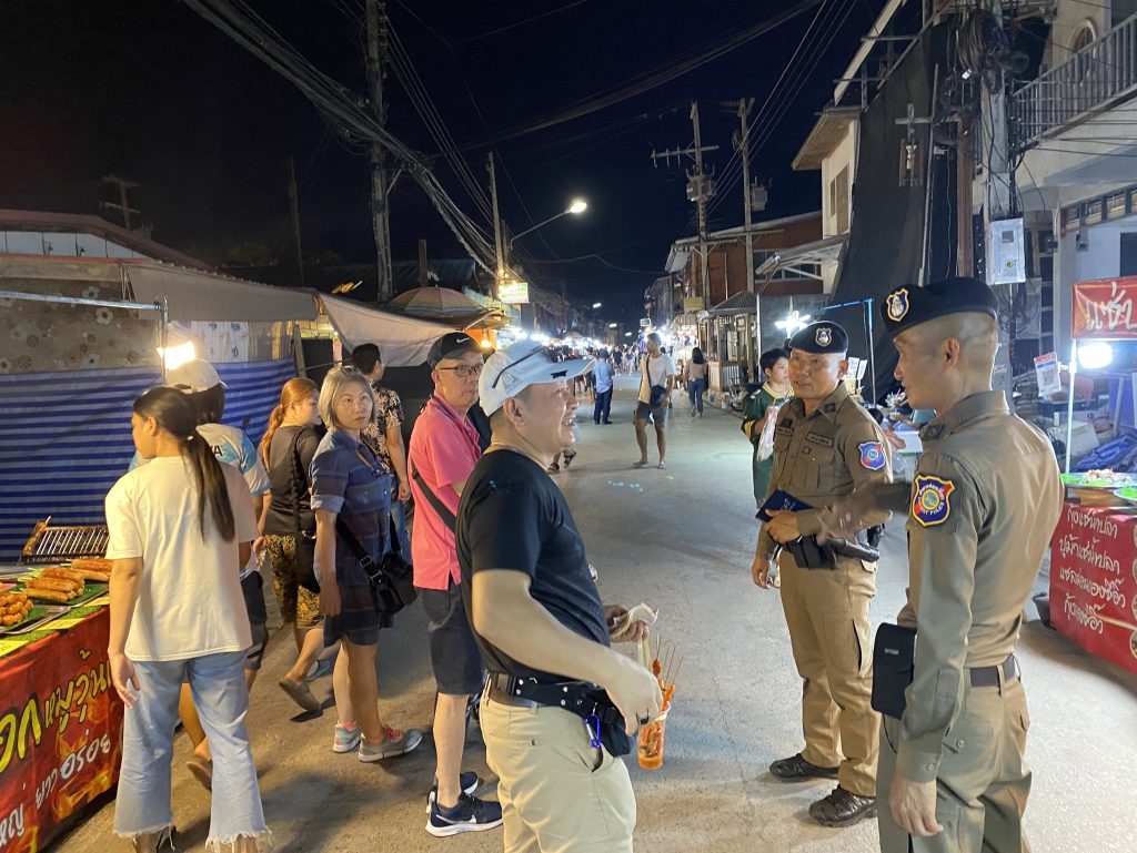ชุดสายตรวจตำรวจท่องเที่ยวและเจ้าหน้าที่ช่วยเหลือตำรวจท่องเที่ยว (To) ออกว 4 เพื่อสร้างความเชื่อมั่นด้านความปลอดภัยแก่ให้นักท่องเที่ยว และพบปะพูดคุยกับนักท่องเที่ยว ณ ถนนคนเดินเชียงคาน อ.เชียงคาน จ.เลย (S.T.C)